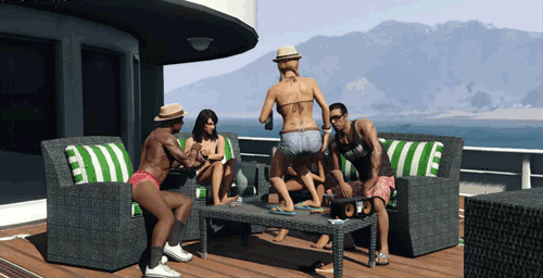 Das ist ein Videospiel namens "Grand Theft Auto 5" (kurz GTA 5) in dieser Szene (Spoiler) versucht der Familienvater (rechts im Bild) seine Tochter von diesem Boot zu retten. Dort will sie sich als Pornodarstellerin bewerben. Er versucht sie vor diesem Lebensstil zu bewahren.